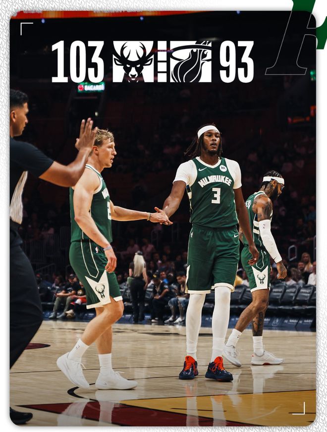 北京时间10月7日,NBA季前赛,雄鹿103-93大胜热火。这场比赛雄鹿的核心扬尼斯只参与了赛前的训练但没有出战,热火的核心泰勒-希罗也没有出战,前三节两队都打得有来有回,可末节热火突然断电被打35-22吞下惨败。